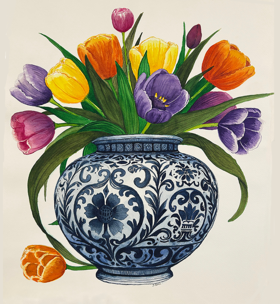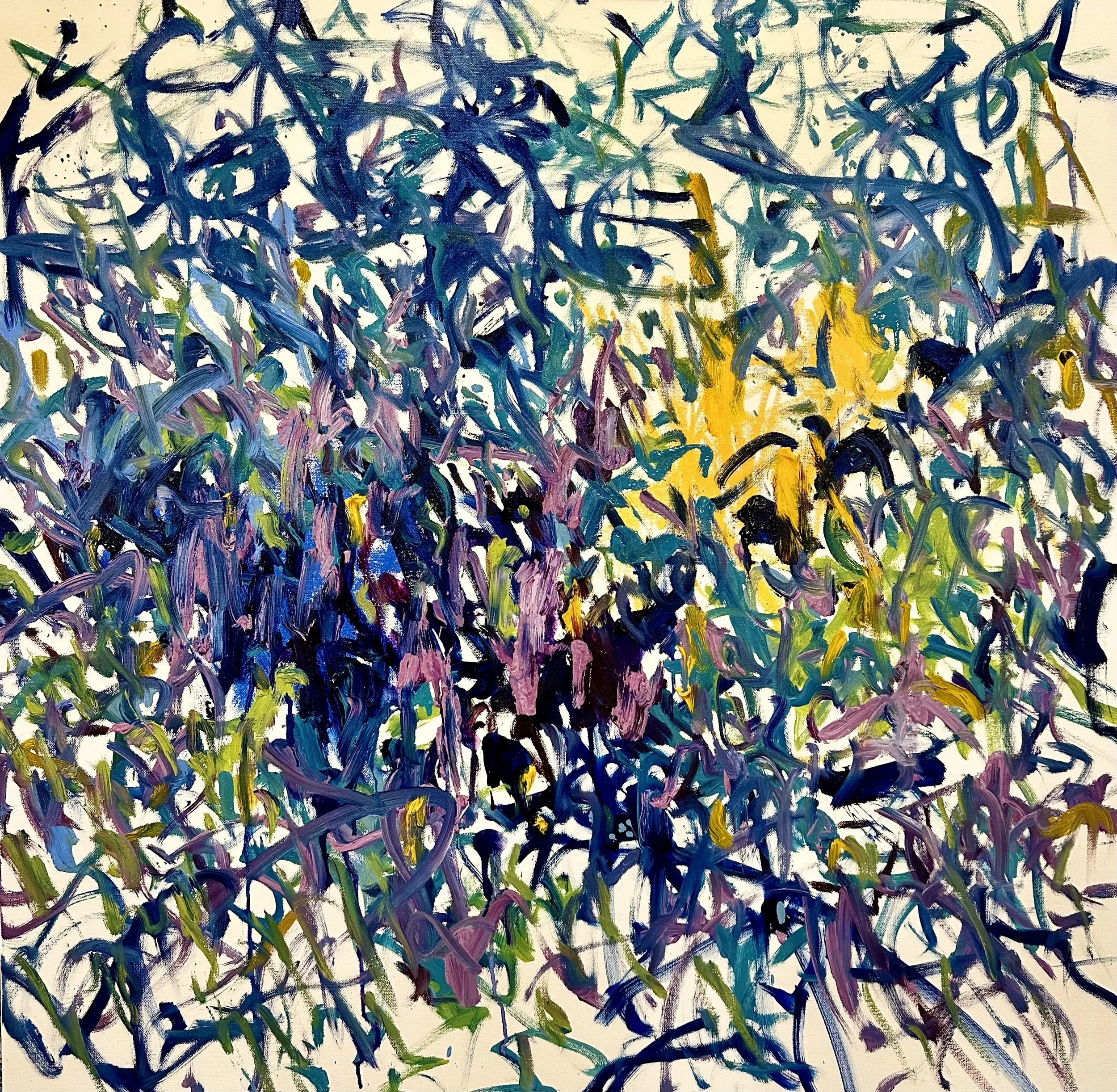 Based in Grand Rapids, Michigan, Benjamin Boss is an artist and librarian at Kendall College of Art & Design whose work is a vibrant intersection of academic history and natural wonder. His gestural, intuitive style is deeply informed by the thousands of art books he manages and the legacies of masters like Joan Mitchell, Cy Twombly, and Claude Monet. In his exhibit, Meditations on the Memory of Flowers, Boss uses painterly abstraction and vivid color to explore a spectrum of emotions—from awe and joy to peace and longing. For Boss, nature is the primary vessel for experiencing divine beauty, and his paintings serve as a dialogue with that transcendence. Inspired by his flower garden and the shores of Lake Michigan, his work acts as an ode to the fleeting essence of springtime and the temporality of life. This evocative approach to color and memory has earned him a place in private collections across North America and features in prestigious publications like World of Interiors and Vanity Fair (UK).