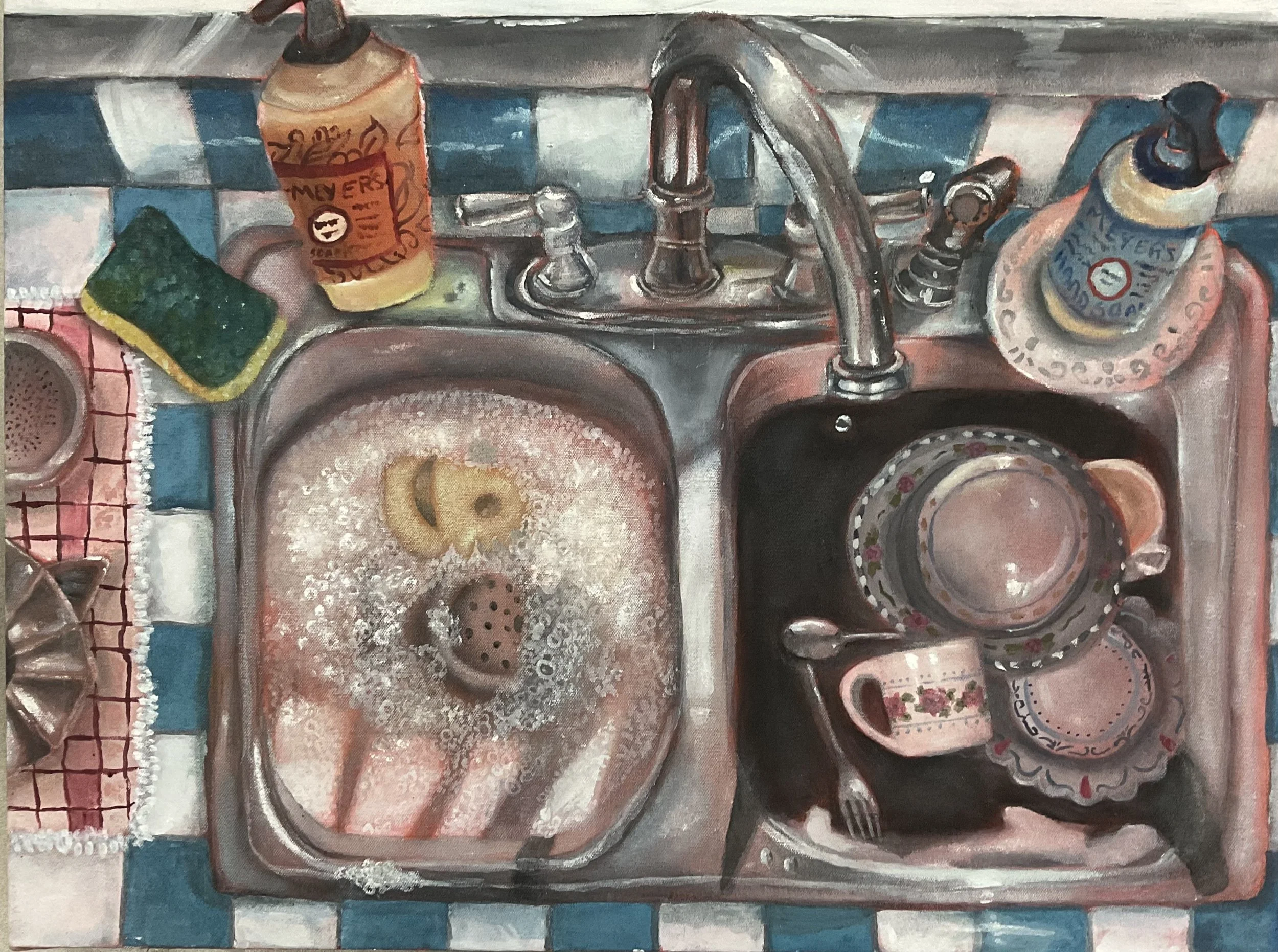 Anna Vinten (nee: Vinten-Johansen) grew up in Connecticut and Michigan, with degrees in Scandinavian studies, vocal performance, and fine arts. A Fulbright scholar, she studied folk music and poetry in Norway. Marriage sparked her artmaking, leading to a BFA in Art Education and teaching/performing in Austria with her family before their 2019 move to western Michigan. Inspired by a Dutch children’s commission, she explored archival images, drawn to the strength of a past culture despite it not being her own. The original black and white photos shifted her focus from color to light, dark, line, form, tone, and pattern, blending abstract and real. Using varied media on canvas or wood, each piece was a learning process, sometimes involving sketches. Anna values this deep dive into another world.